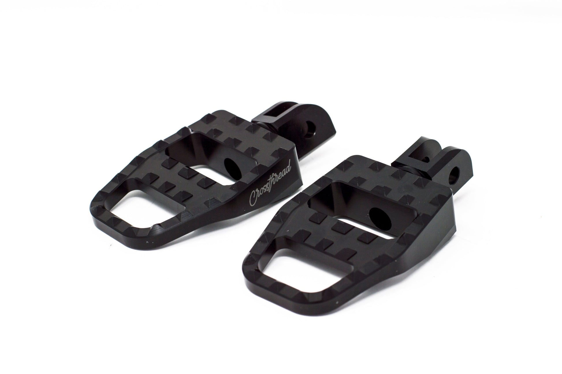 Looking for some grippy Pegs but don't want the spikes? Then these are the Pegs for you. Our MX Pegs are made from 6061 T6 alloy aluminum by CNC machining. These materials are up to 50% Lighter than most stock foot pegs. Color anodizing surface treatment helps improve the corrosion resistance and gives a badass custom look. Full 360 degree foot peg rotation makes these foot pegs perfect for whatever riding style you prefer. All fastener are made form stainless steel for wear-resisting and resisting corrosion. Our Pegs surface measures in at 3.5'' x 2.5''