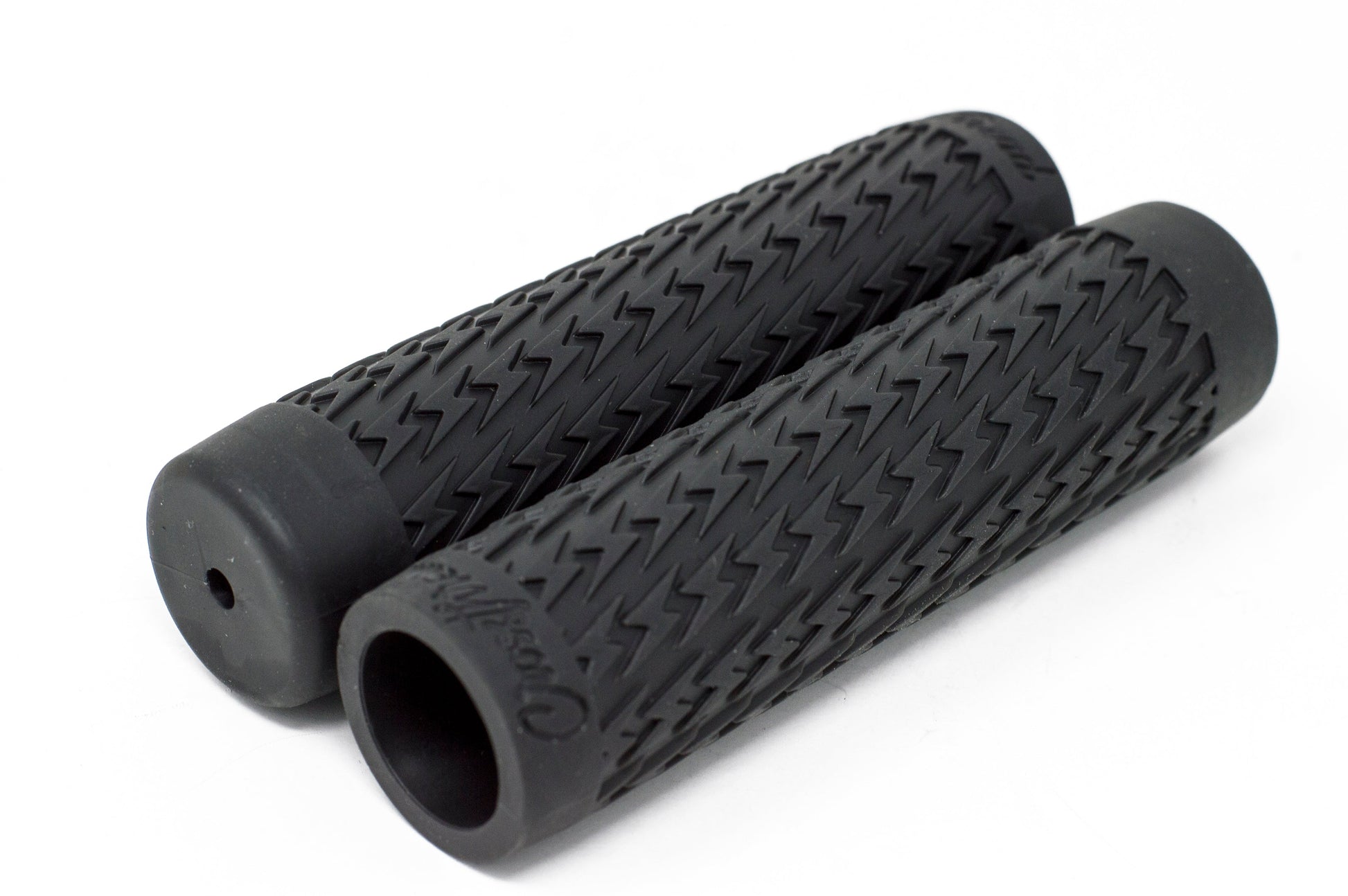 Check out our new Flash Grips! Made from a aggressive hard rubber for an aggressive grip. Great for rowdy riding! Fits 1 inch bars. Sold in pairs. Throttle tube not included. Currently just available in black but we hope to offer more color options in the future.