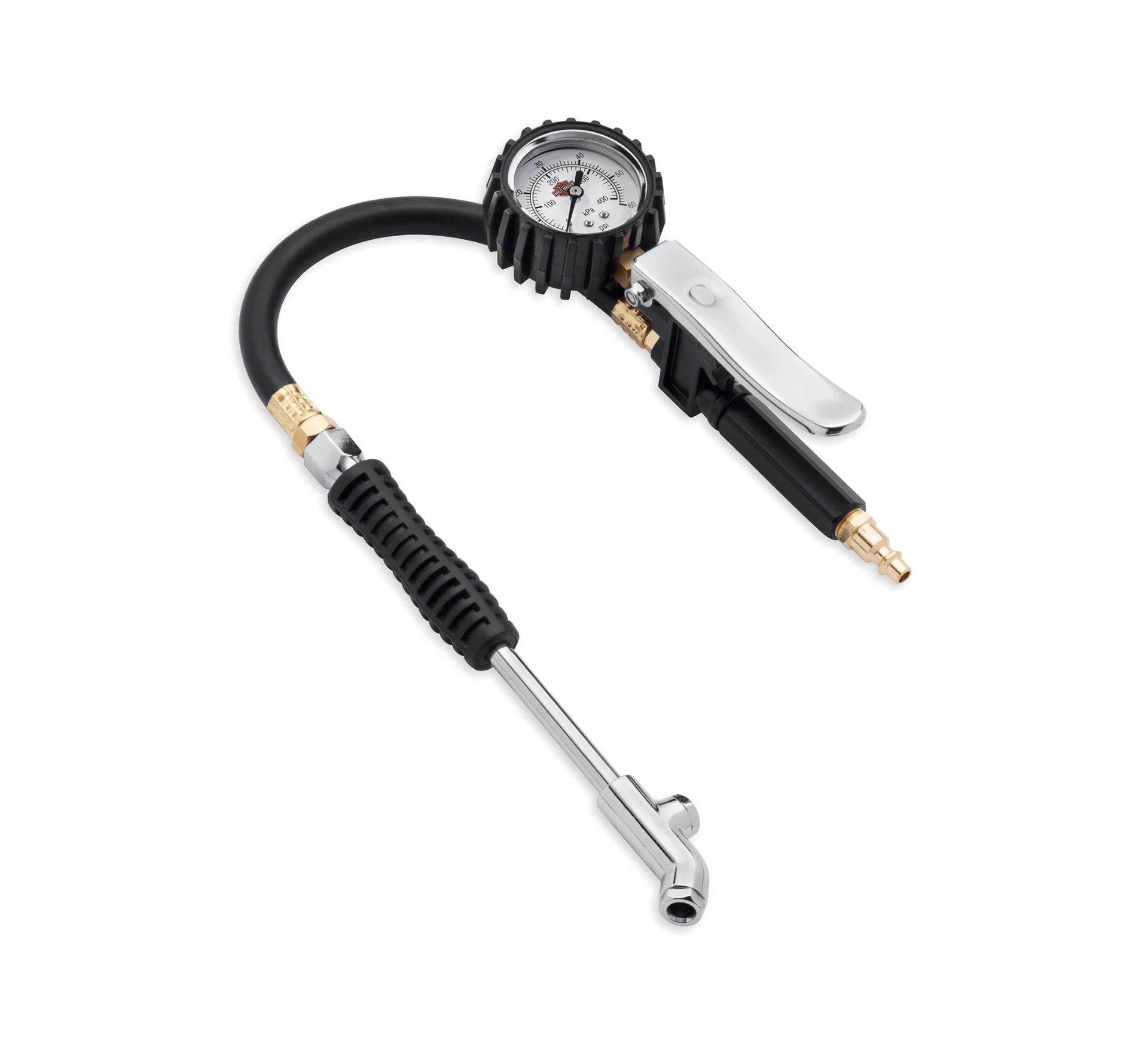 Simplify checking the air pressure level and filling the tires on your motorcycle. This Tire Pressure Gauge features a an 18" flexible hose and 2-way air chuck with both a 45° fill port and a unique side fill port that provides easy straight-in access to hard-to-reach motorcycle valve stems.